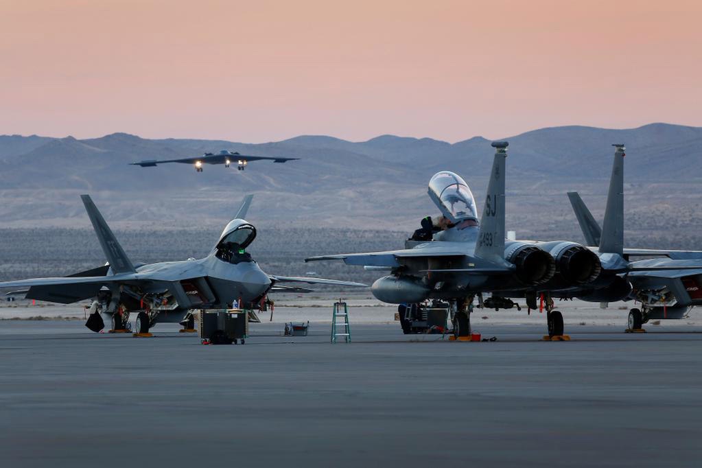 Air Frame: A B-2A Spirit stealth bomber, F-22A Raptor, and F-15E Strike Eagle conduct advanced combat training with NATO Allies at Red Flag 15-1 at Nellis AFB, Nevada.