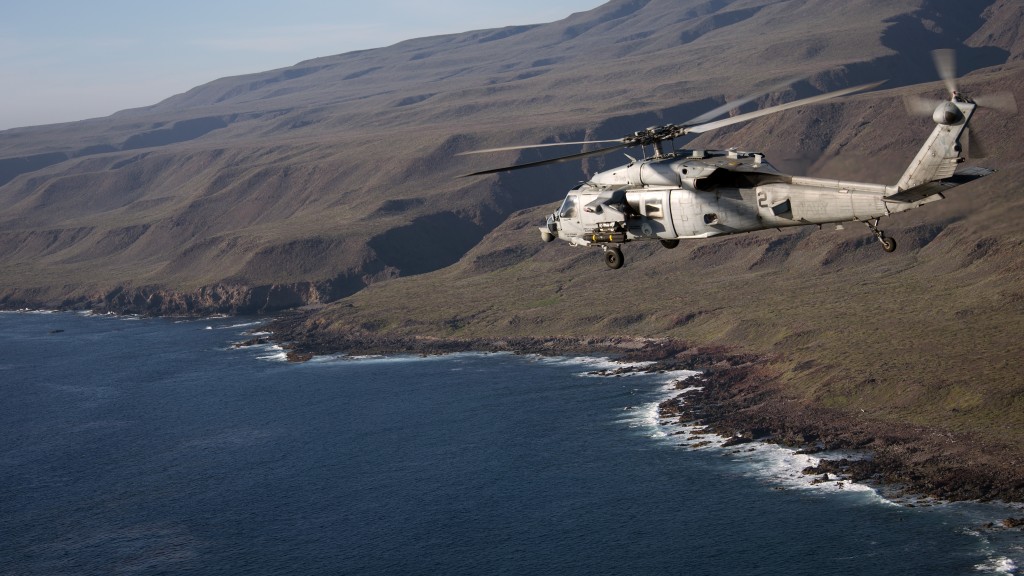 An MH-60S Sea Hawk helicopter assigned to Helicopter Sea Combat Squadron Eight (HSC) 8 prepares for a live fire exercise. HSC-8 provides vertical lift search and rescue, logistics, anti-surface warfare, special operations forces support, and com…